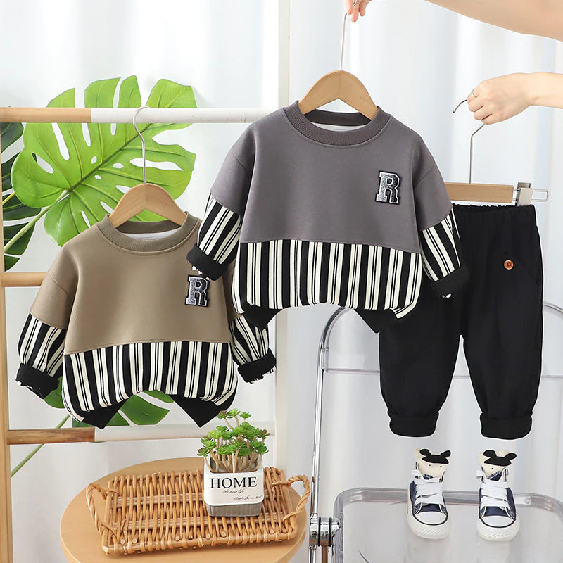 طقم بنطلون عملي للأولاد مكوّن من قطعتين مناسب للأطفال من عمر سنتين إلى خمس سنوات بتصميم رياضي مريح يناسب الحركة اليومية واللعب يوفر قصّة عادية تمنح الطفل راحة أثناء الارتداء مع خامة خفيفة تساعد على الاستخدام المتكرر دون إزعاج يتميز بسهولة التنسيق مع التيشيرتات والقطع اليومية ليكون خياراً مثالياً للأنشطة اليومية والخروج