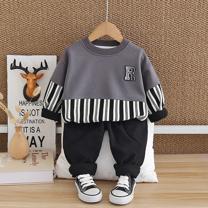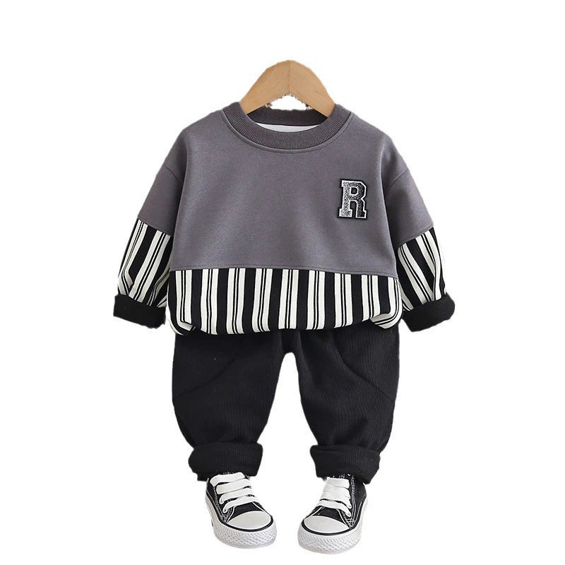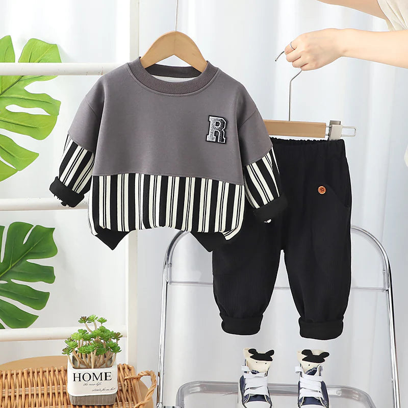 طقم بنطلون أولاد قطعتين من عمر 2 إلى 5 سنوات رمادي