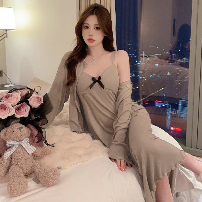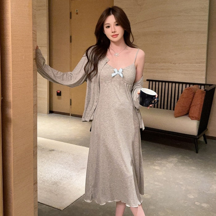 ملابس مريحة نسائية مكوّنة من قطعتين بتصميم بسيط وعملي يناسب الاستخدام داخل المنزل. تتميز بياقة على شكل V تضيف لمسة أنثوية أنيقة، مع أكمام طويلة وخامة منتصف مطاطا توفر راحة ومرونة مناسبة للحركة اليومية. يأتي باللون الصامد ليمنح مظهرًا هادئًا وسهل التنسيق، ليكون خيارًا مثاليًا للاسترخاء والراحة