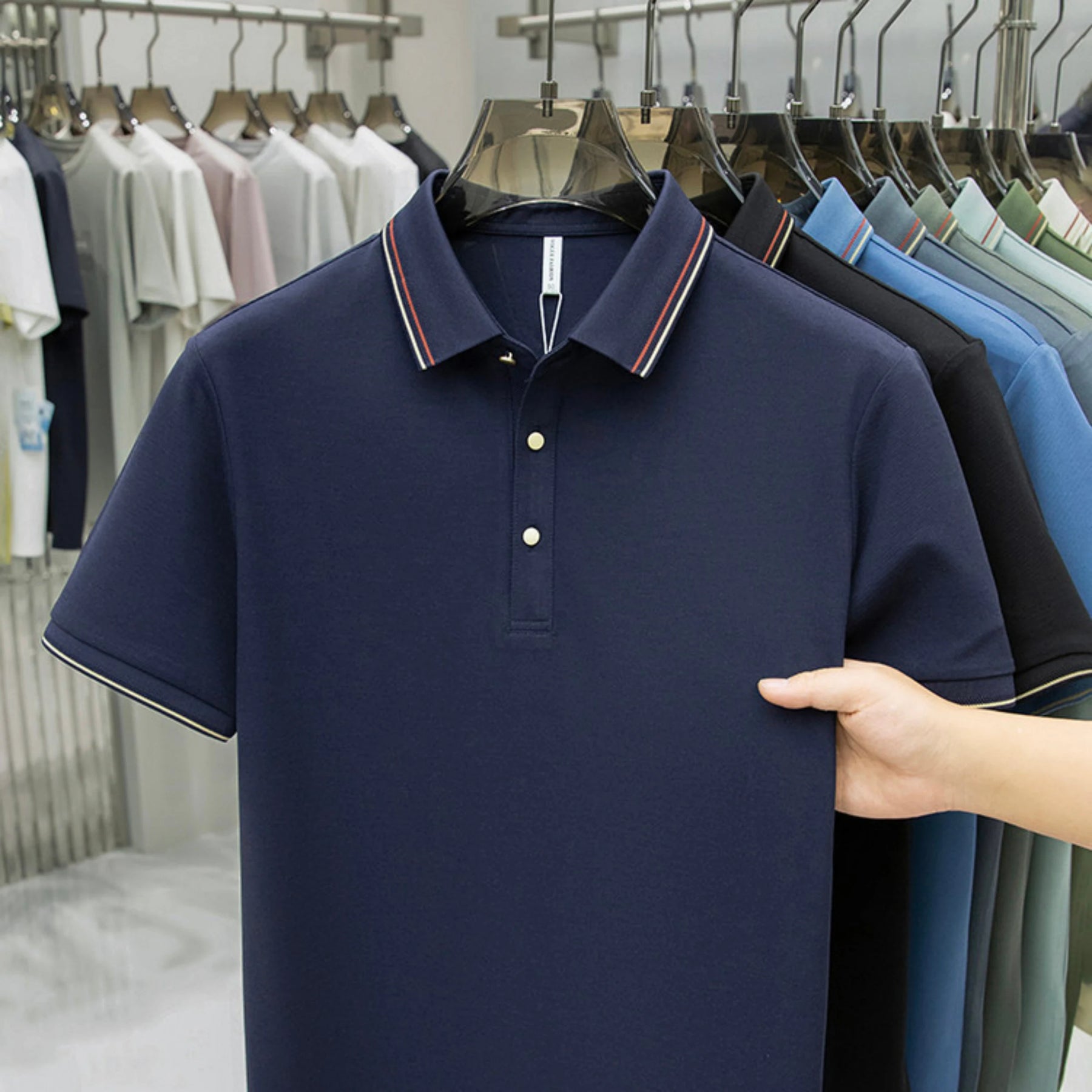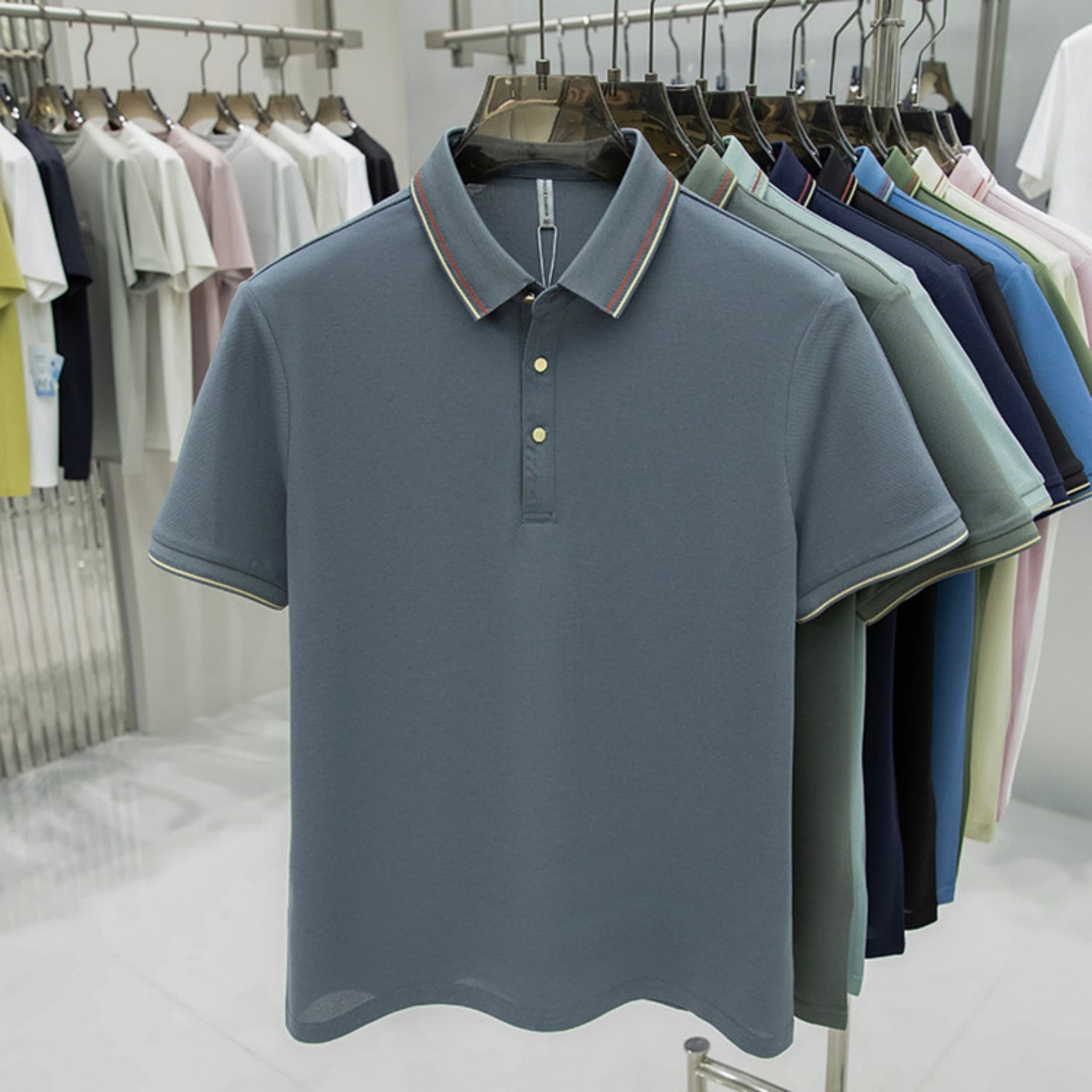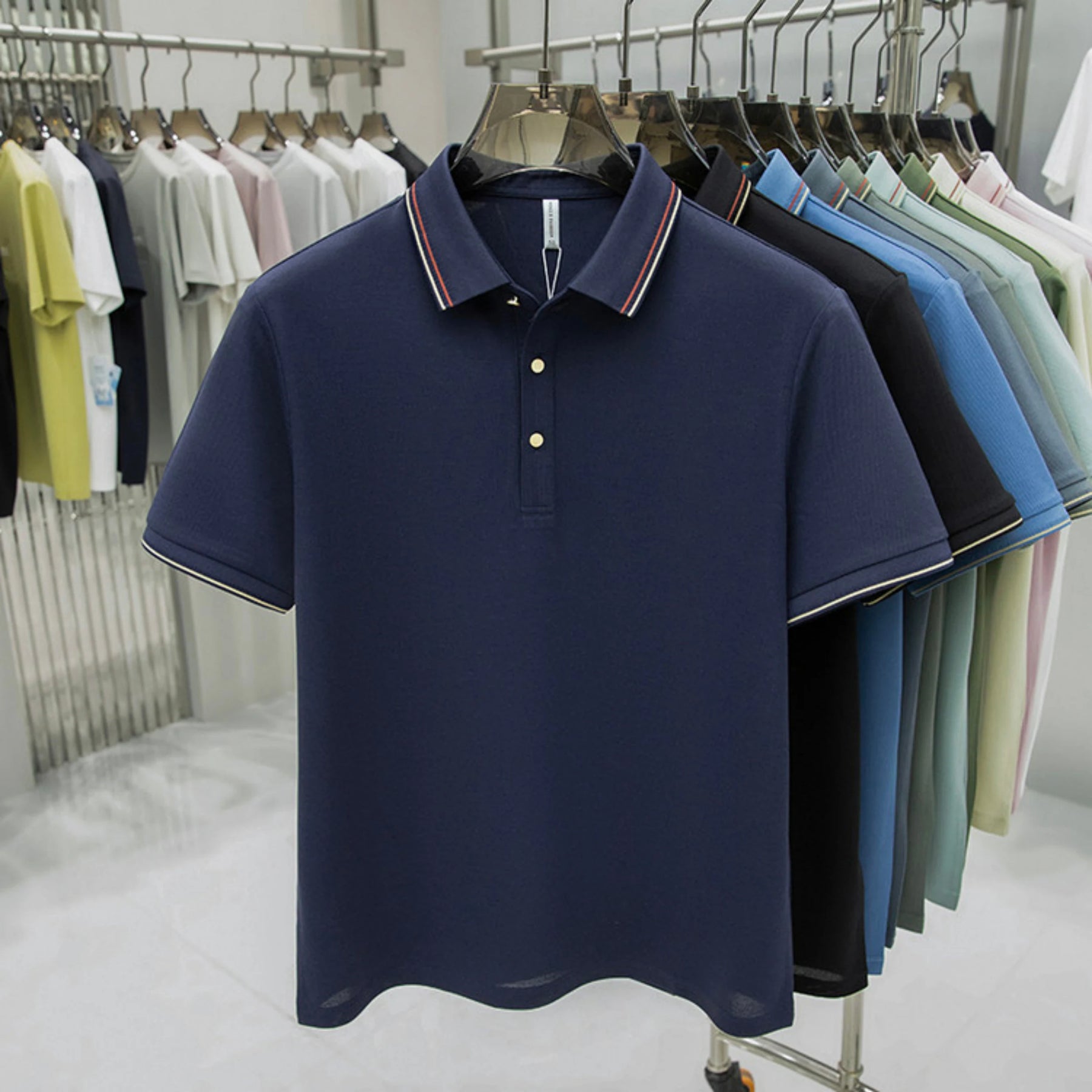 قميص بولو رجالي صيفي بتصميم رياضي عملي مناسب للأنشطة اليومية خلال فصل الصيف، مصنوع من خامة خفيفة تساعد على تهوية الجسم وتوفر راحة مثالية أثناء الحركة، يتميز بقصّة مريحة وأكمام منتظمة تحافظ على المظهر الأنيق طوال اليوم