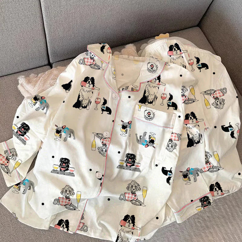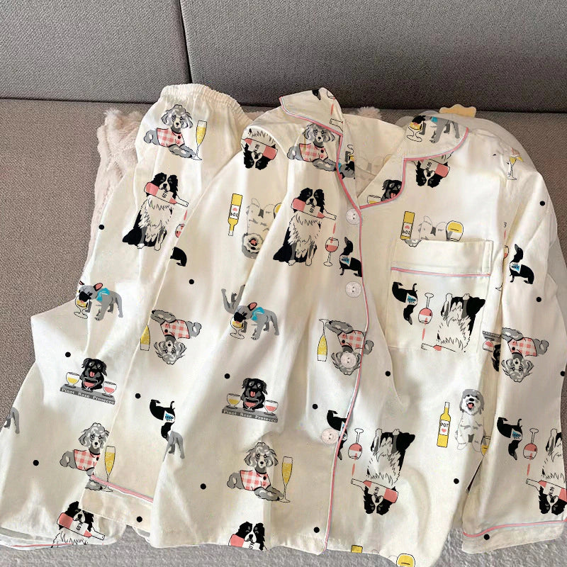 مجموعة نوم نسائية مكوّنة من قطعتين بتصميم كرتوني لطيف يمنح إحساسًا بالراحة والمرح أثناء الاستخدام داخل المنزل. تتميز بطوق القميص الكلاسيكي الذي يضفي لمسة أنيقة وبأكمام طويلة مناسبة لأوقات الراحة، مع خامة منخفضة المرونة تحافظ على شكلها وتوفر استخدامًا مريحًا يوميًا. خيار مثالي للنوم والاسترخاء بإطلالة بسيطة وعملية