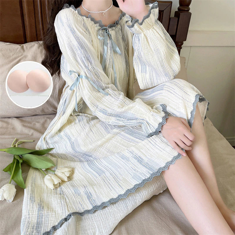 ثوب نوم نسائي بأكمام طويلة بتصميم عملي ومريح يناسب الاستخدام داخل المنزل. يتميز بياقة مستديرة كلاسيكية تمنح إحساسًا بالراحة، مع خامة منتصف مطاطا توفر مرونة مناسبة أثناء الحركة. يأتي بنمط شريطي / منقوش يضفي لمسة أنثوية بسيطة، ليكون خيارًا مثاليًا للنوم والاسترخاء اليومي لمختلف الفئات العمرية