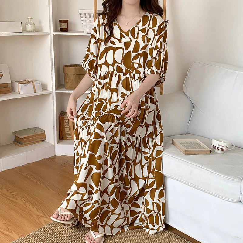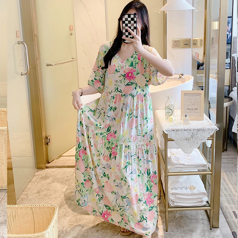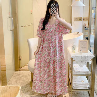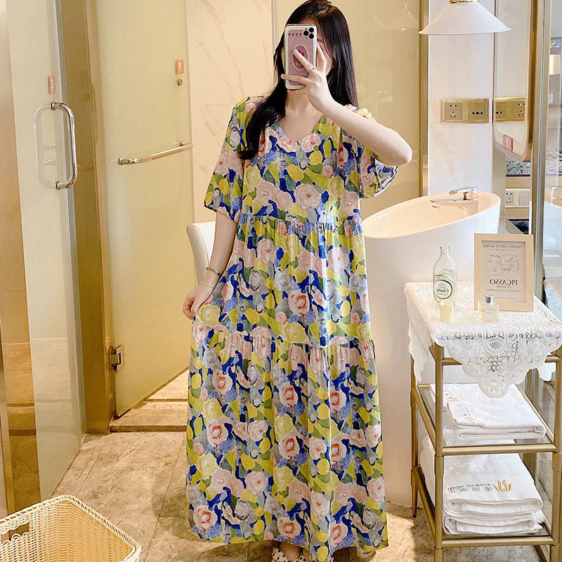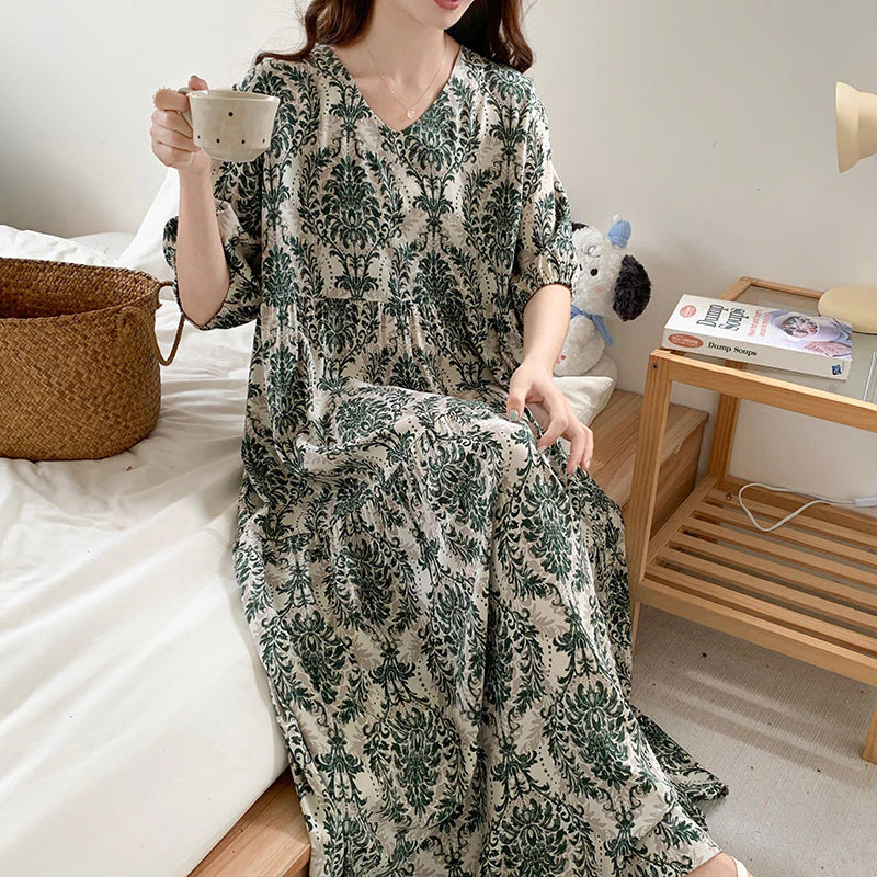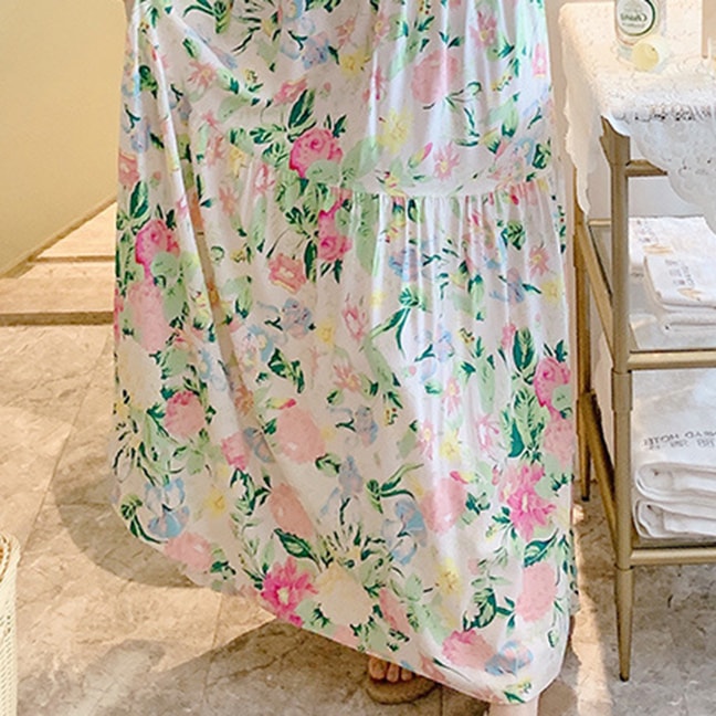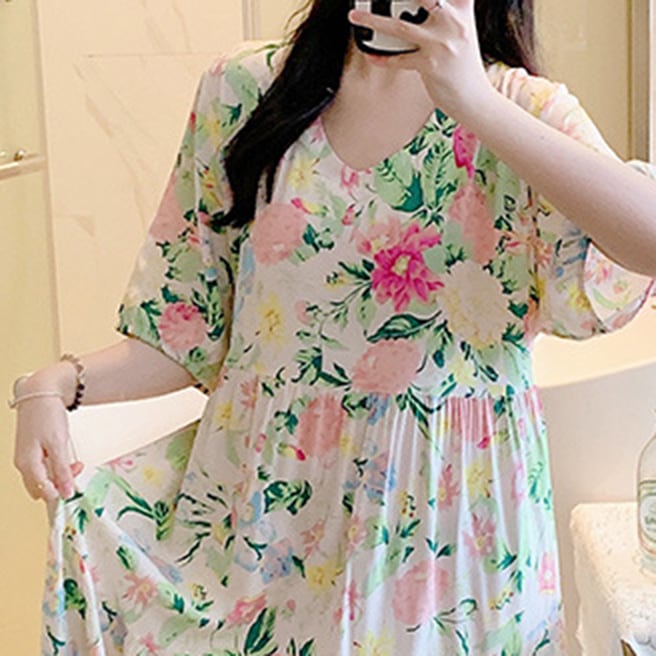 ثوب نوم نسائي بتصميم أنيق وخفيف، مناسب للاستخدام داخل المنزل ويمنح إحساسًا عاليًا بالراحة. يتميز بقصة ناعمة مع ياقة مستديرة وأكمام قصيرة، إضافة إلى نمط زهري مع خطوط منقوشة يضفي لمسة أنثوية جذابة. تصميمه العملي يجعله خيارًا مثاليًا للاستخدام اليومي