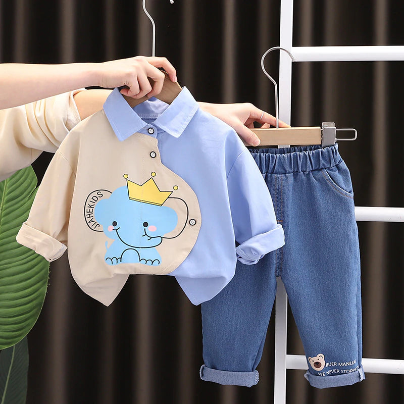 بدلة سروال للأطفال الأولاد مكوّنة من قطعتين، مناسبة للأعمار من سنتين إلى 5 سنوات. تصميم عملي ومرن للحركة اليومية مع خامة مريحة وغير مرنة لتوفير الراحة والمتانة أثناء اللعب والأنشطة اليومية