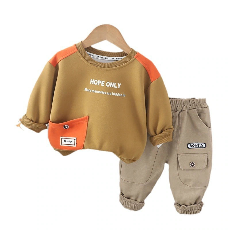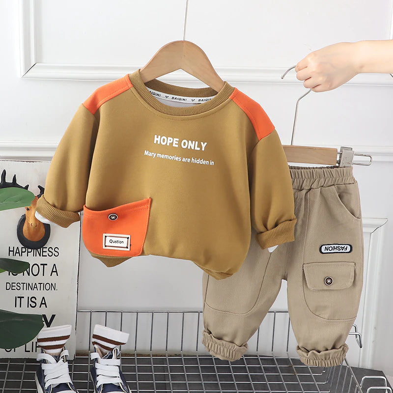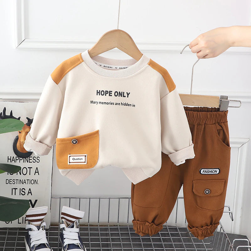 بدلة سروال أولاد قطعتين من عمر 2 إلى 5 سنوات بني