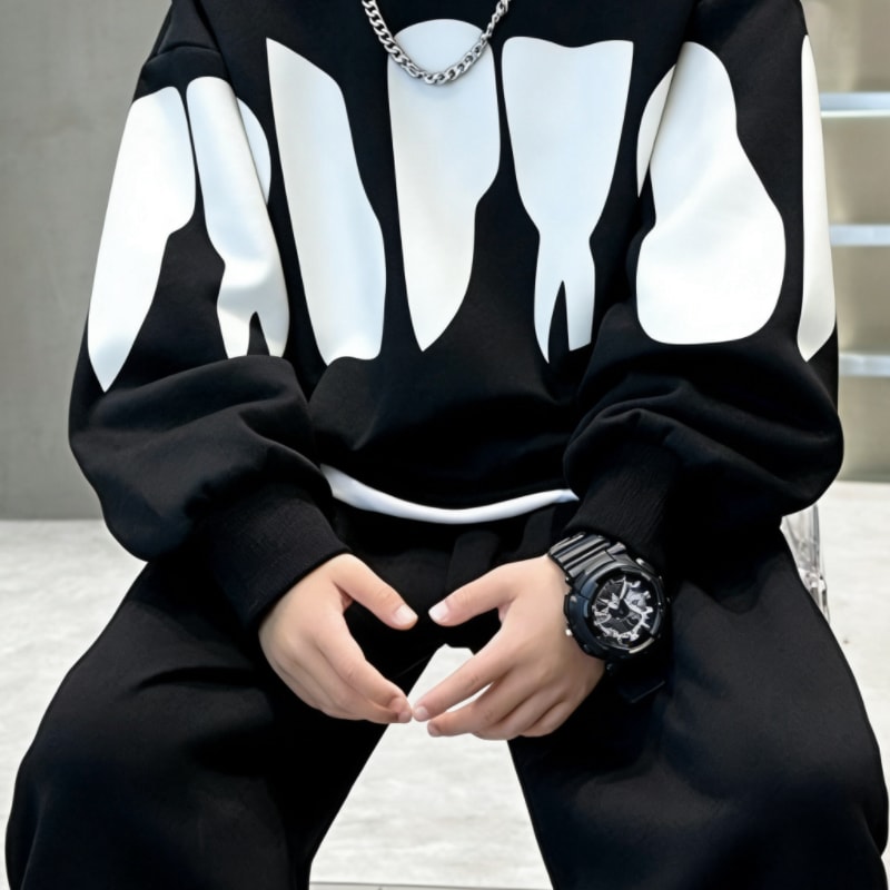 بدلة سروال للأولاد مكوّنة من قطعتين، مناسبة للأعمار من 4 إلى 14 سنة، بتصميم رياضي عصري يجمع بين الراحة والعملية. تتميز البدلة بقصّة عادية مائلة للفضفاض لتوفير حرية الحركة، مع خصر بمرونة متوسطة (منتصف مطاطي) يجعلها مثالية للأنشطة اليومية والرياضية.