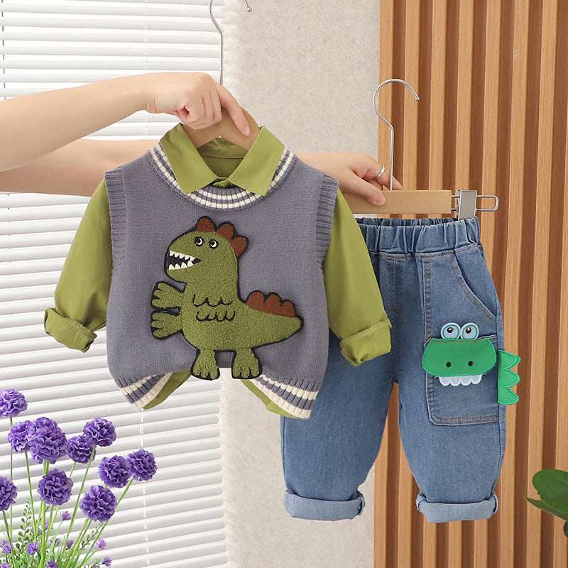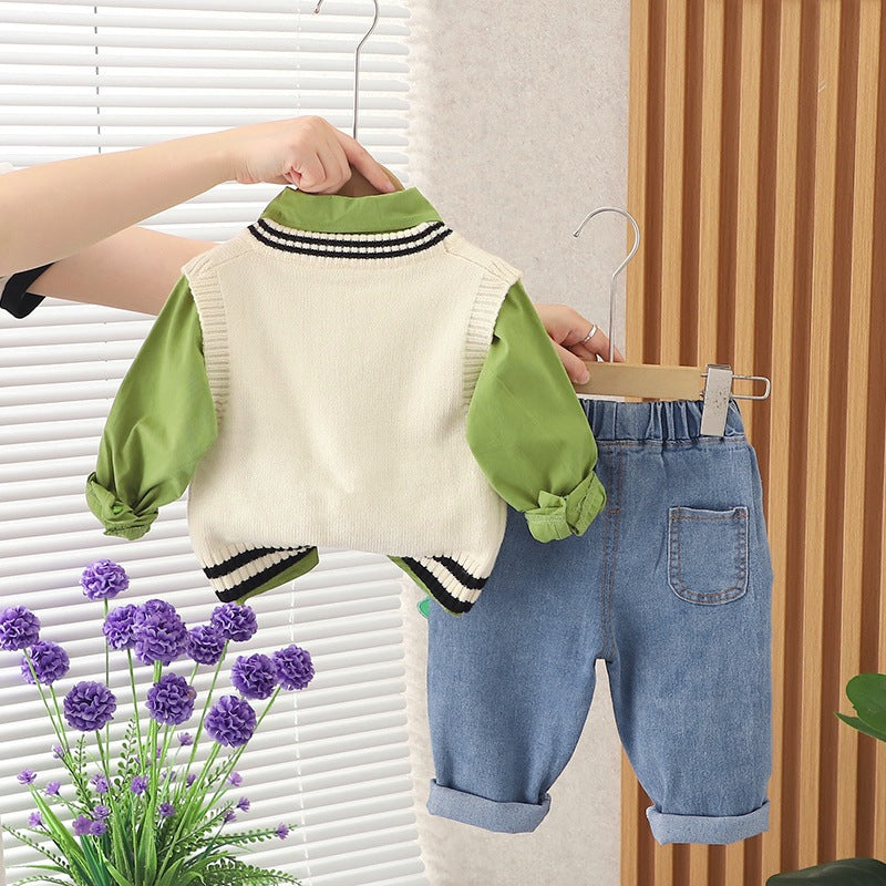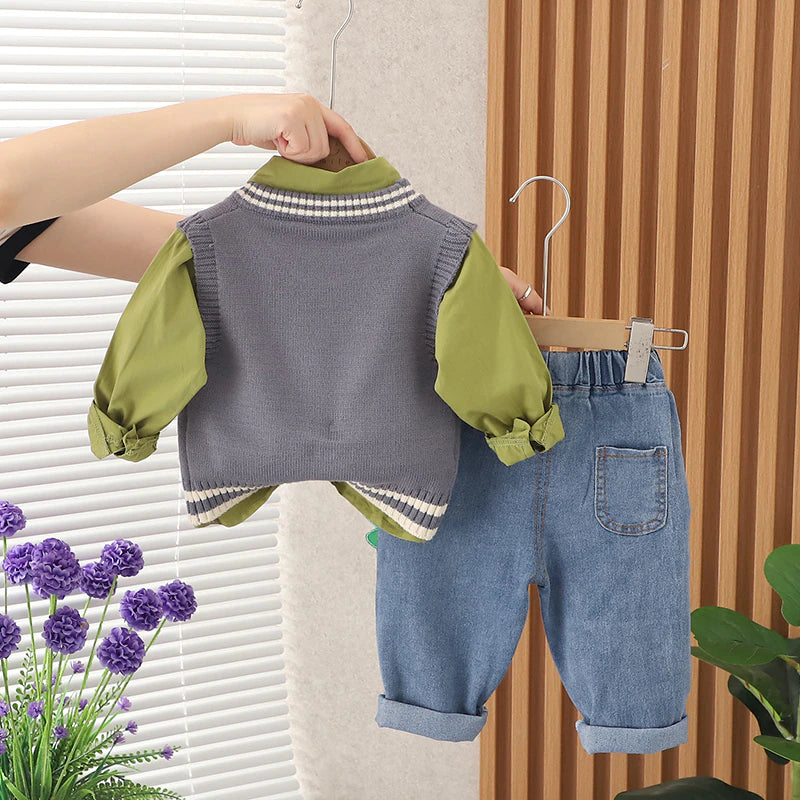 بدلة سروال للأطفال الأولاد والبنات مكوّنة من 3 قطع، مناسبة للأعمار من 2 إلى 3 سنوات، تصميم عملي ومريح للحركة اليومية، بخامة غير مرنة لتوفير الراحة والمتانة