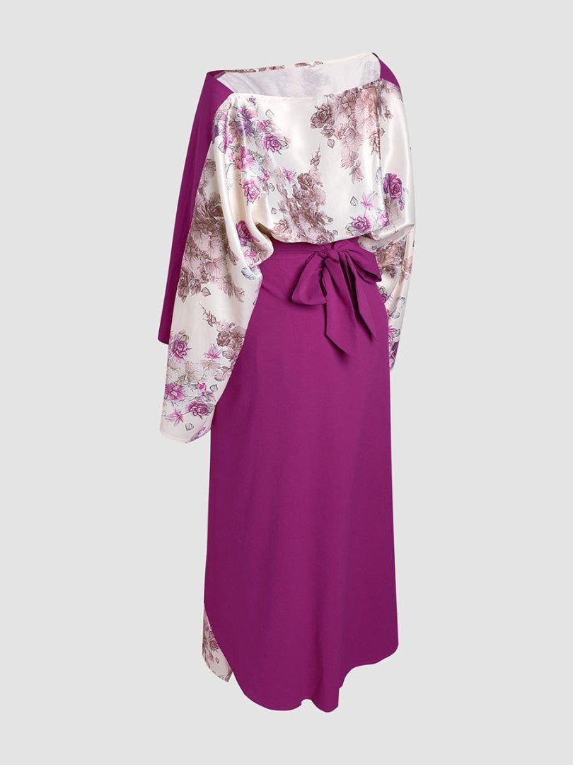 طقم عربي نسائي قطعتين زهري للمناسبات أرجواني