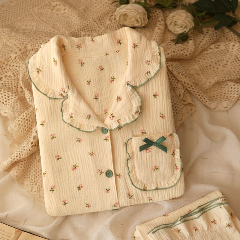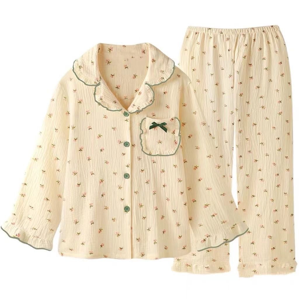 طقم نوم نسائي مكوّن من قطعتين بتصميم مريح وجذاب، يتميز بياقة بولو وأكمام طويلة ليمنح دفئًا وراحة مثالية داخل المنزل. يأتي بنمط زهري مع رسومات كرتونية تضيف لمسة مرحة وأنثوية، مع خامة من أقمشة أخرى غير مرنة توفر ثباتًا وشكلًا أنيقًا أثناء الارتداء