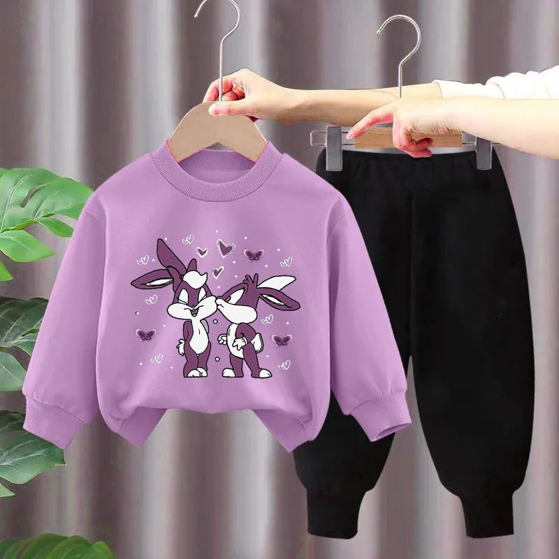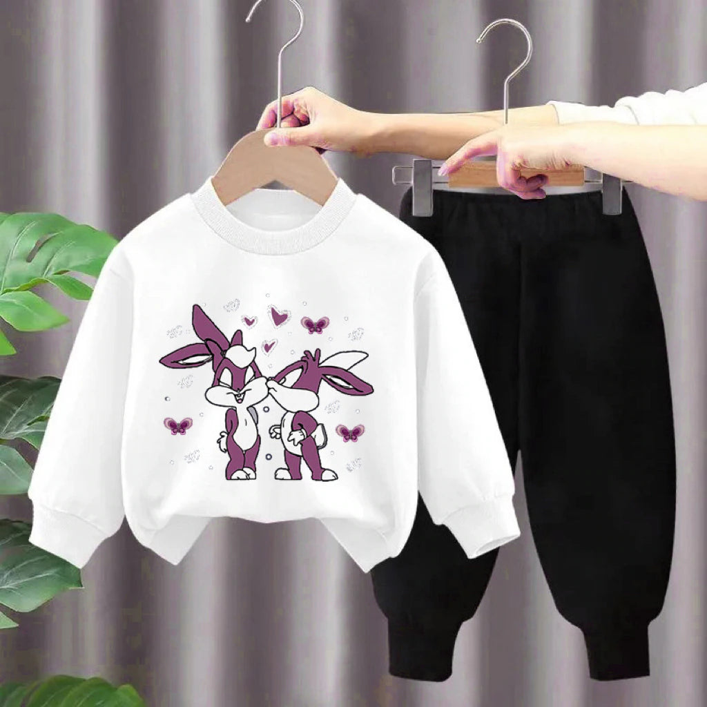 بدلة سروال للبنات مكوّنة من قطعتين مناسبة للأطفال من عمر 2 إلى 9 سنوات بتصميم عملي وعادي يوفر الراحة أثناء الأنشطة اليومية مثل اللعب داخل المنزل أو الرياضة يتميز بخامة منخفضة المرونة وقصّة عادية تسمح بحرية الحركة طوال اليوم، خيار مثالي للاستخدام اليومي