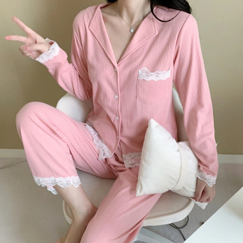 طقم نوم نسائي 2 قطع كم طويل لون صامد وردي1