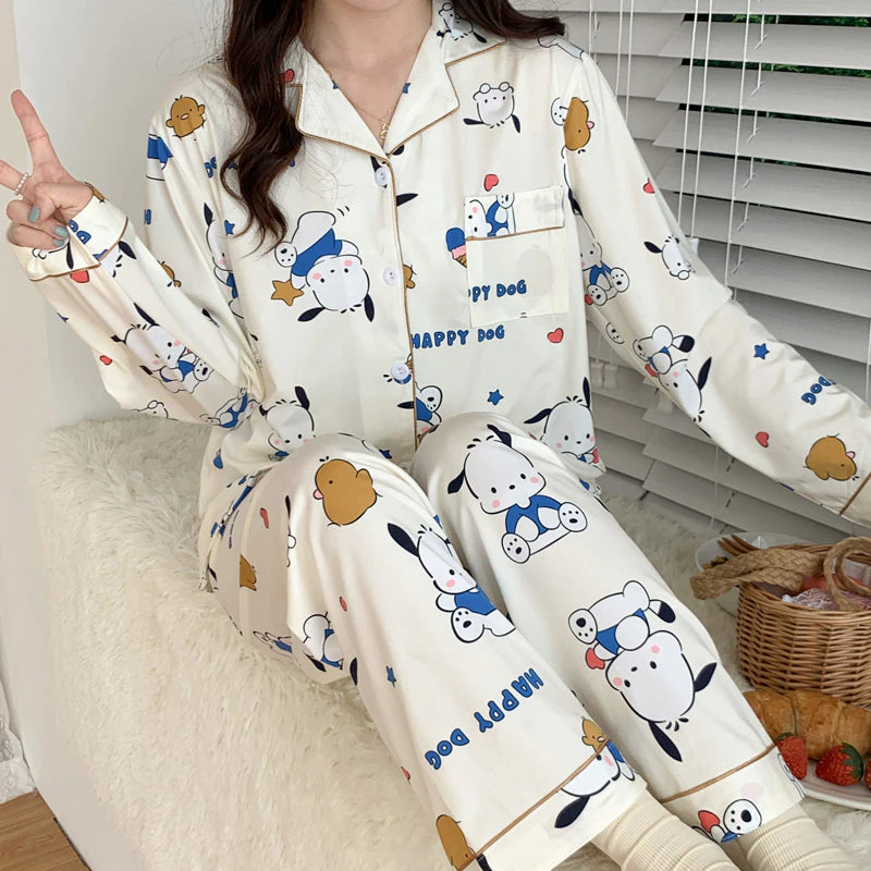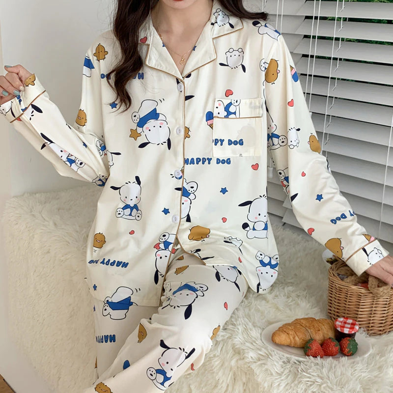 طقم نوم نسائي مكوّن من قطعتين بتصميم عملي وأنيق، يتميز بياقة طوق القميص وأكمام طويلة، مناسب للاستخدام داخل المنزل واليومي. النمط بلون صامد وخامة مرنة منتصف مطاطا لتوفير الراحة وثبات الشكل طوال اليوم