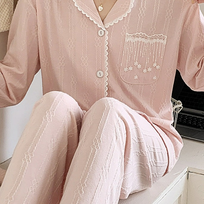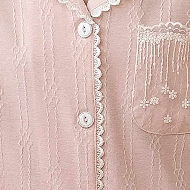 طقم نوم نسائي مكوّن من قطعتين بتصميم عملي ومريح، يتميز بياقة بولو وأكمام طويلة، مناسب للاستخدام داخل المنزل. النمط بلون صامد وخامة القماش مريحة، مع مرونة منتصف مطاطا تضمن ثبات الشكل وراحة كاملة أثناء النوم
