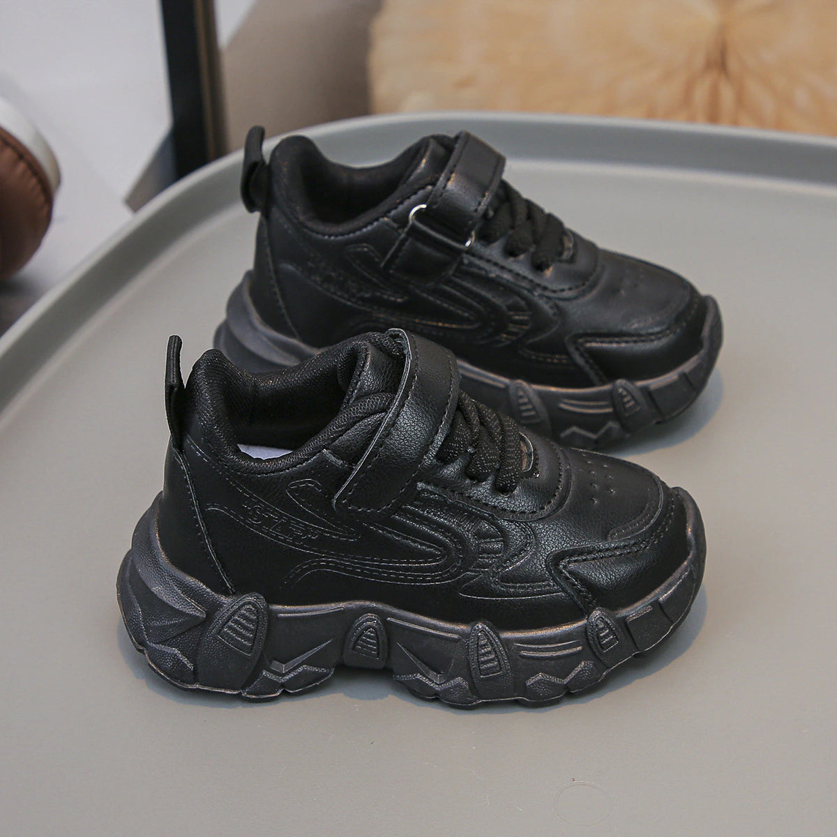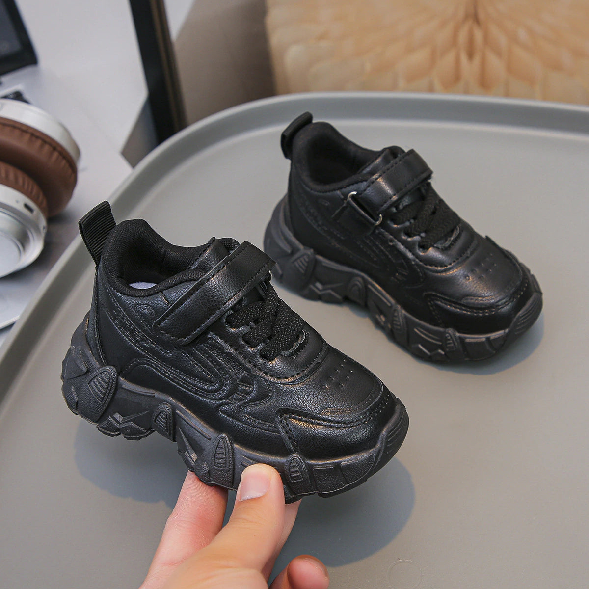 حذاء سنيكرز للأطفال (أولاد/بنات) بتصميم عصري مزين بزخارف وتصحيحات مميزة تضيف لمسة جذابة لإطلالة طفلك اليومية. مصنوع من خامات متينة تشمل الجلد الصناعي لضمان الراحة والدعم أثناء المشي واللعب. يتميز بإغلاق فيلكرو عملي لسهولة الارتداء والخلع، مما يجعله خيارًا مثاليًا للمدرسة والأنشطة اليومية