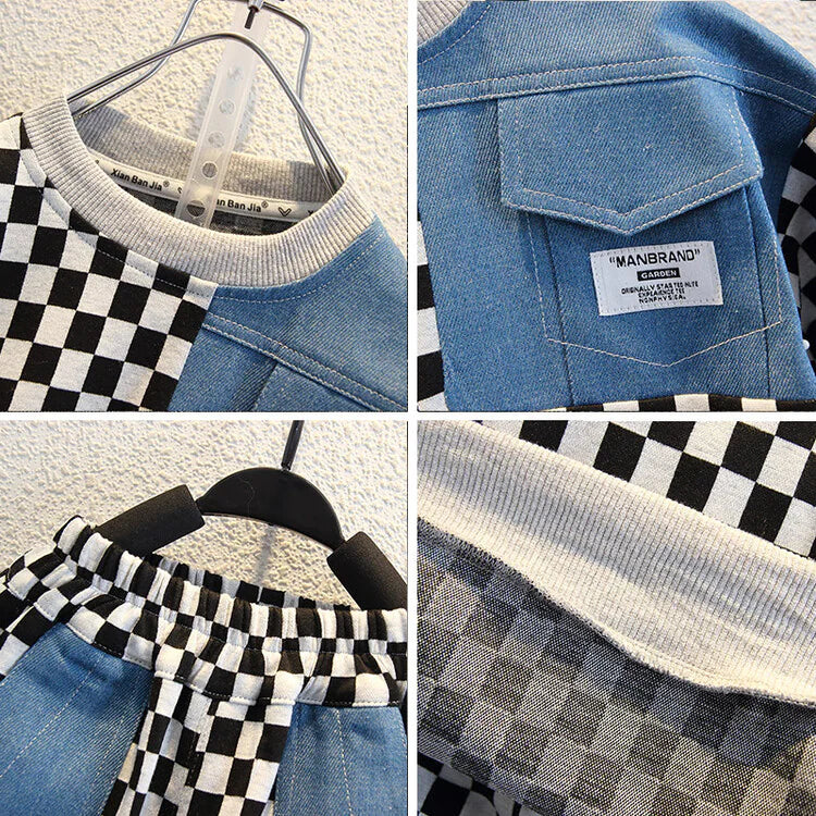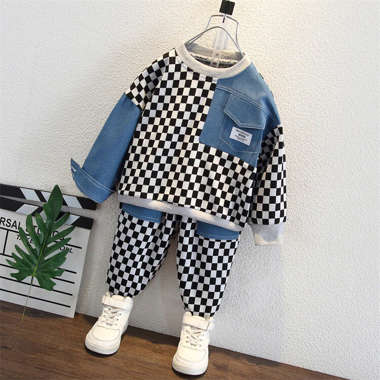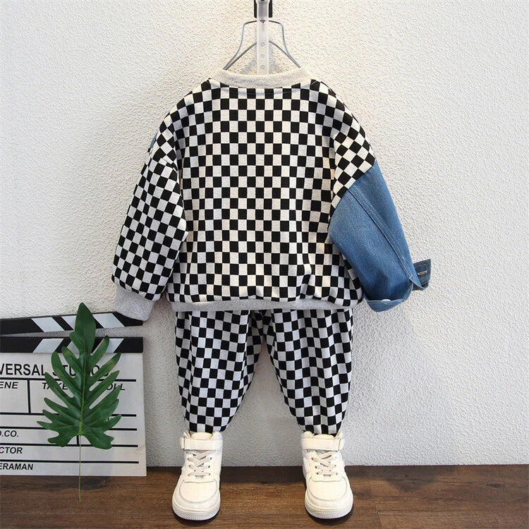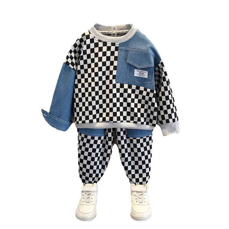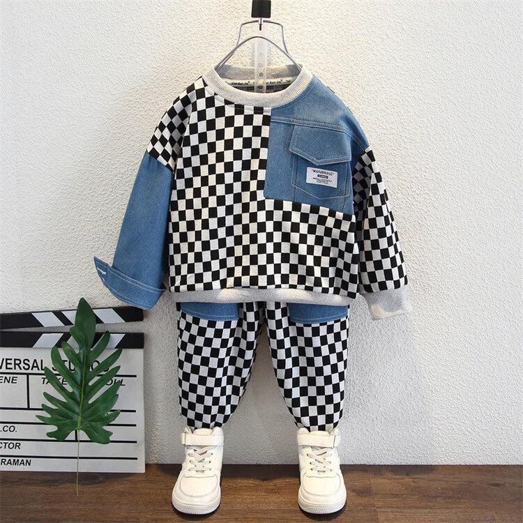 بدلة سروال أولاد 2 قطعة من عمر 2 إلى 11 سنة مربعات كلاسيكي
