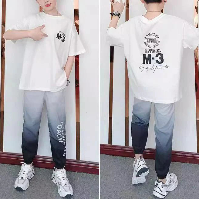 بدلة سروال للأولاد مكوّنة من قطعتين مناسبة للأعمار من 3 إلى 14 سنة، بتصميم عملي وعادي يوفر راحة أثناء الحركة اليومية واللبس المتكرر
