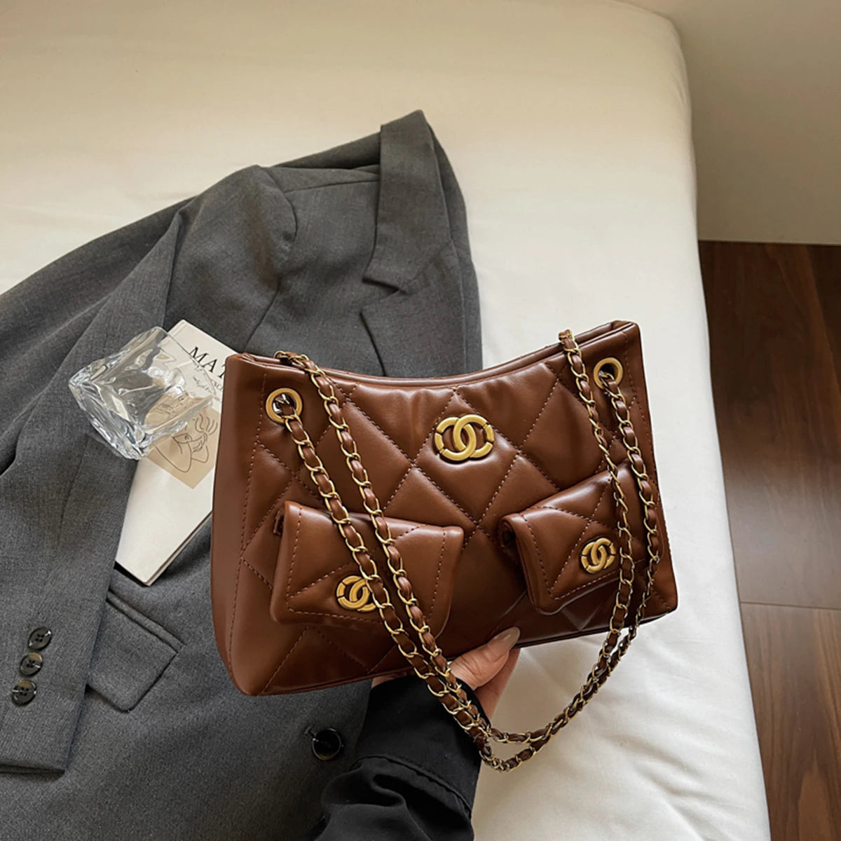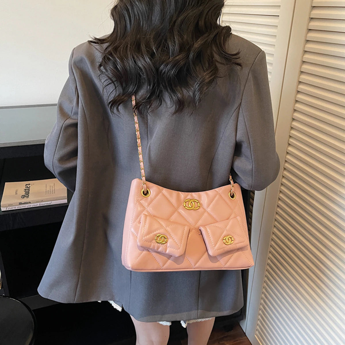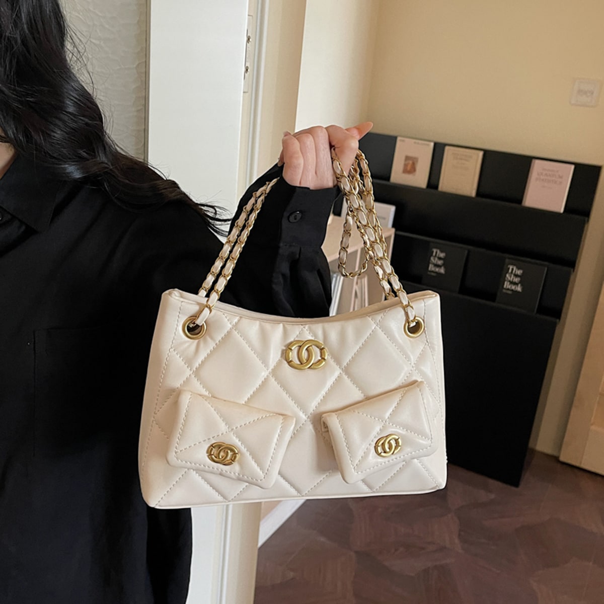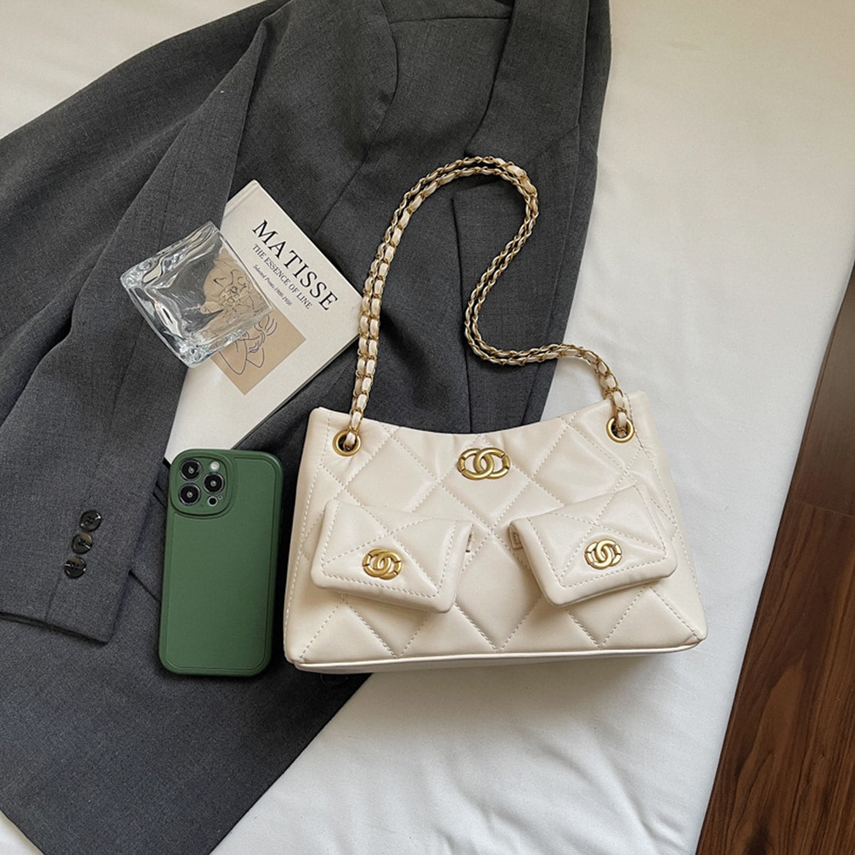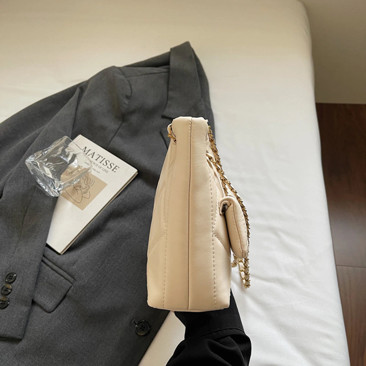 حقيبة يد نسائية أنيقة وعصرية، مثالية للخروج الليلي والتنقل وحضور الحفلات والمناسبات العائلية والعطلات. مصنوعة من خامات عالية الجودة تشمل PU، الجلد الصناعي، والجلد من الألياف الدقيقة لتضمن المتانة والمظهر الراقي. تأتي بفتحة بسستة لإبقاء محتوياتك آمنة، مع سلسلة زخرفية تضيف لمسة جمالية أنيقة على تصميم الحقيبة.