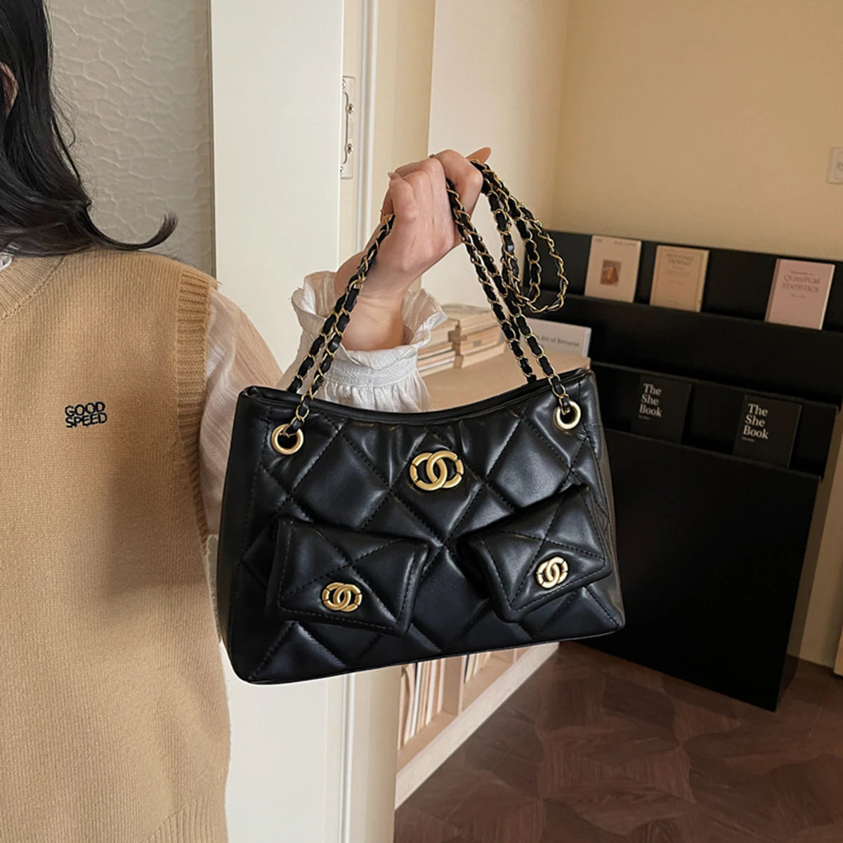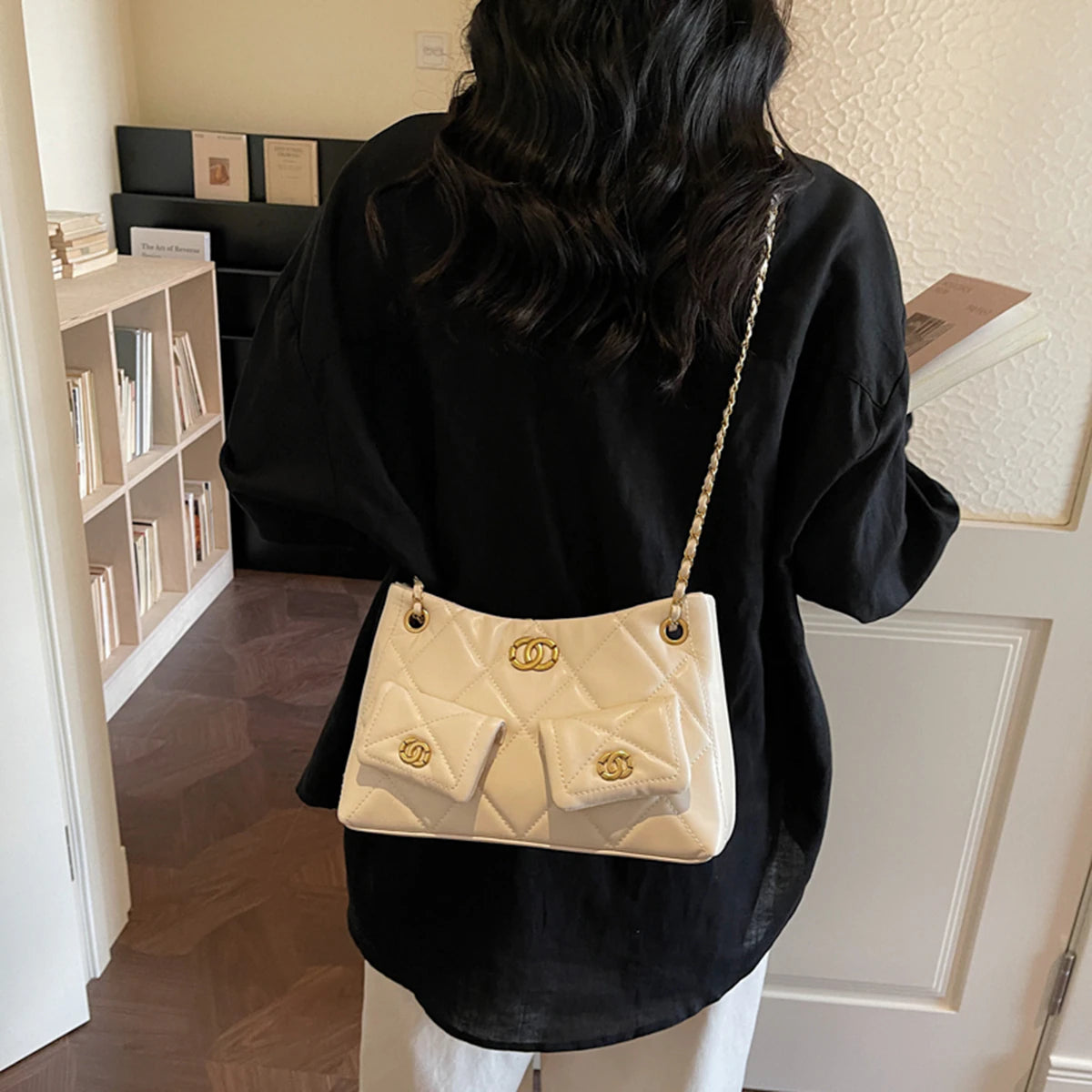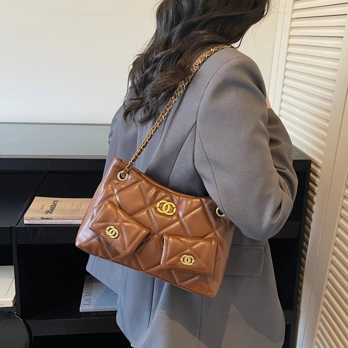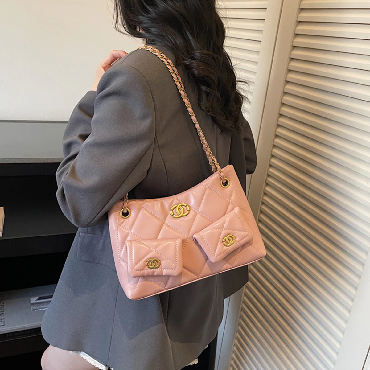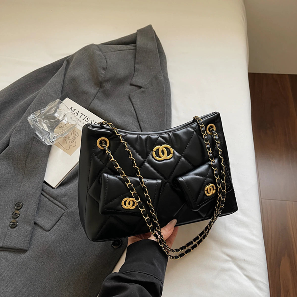 حقيبة يد نسائية أنيقة وعصرية، مثالية للخروج الليلي والتنقل وحضور الحفلات والمناسبات العائلية والعطلات. مصنوعة من خامات عالية الجودة تشمل PU، الجلد الصناعي، والجلد من الألياف الدقيقة لتضمن المتانة والمظهر الراقي. تأتي بفتحة بسستة لإبقاء محتوياتك آمنة، مع سلسلة زخرفية تضيف لمسة جمالية أنيقة على تصميم الحقيبة.