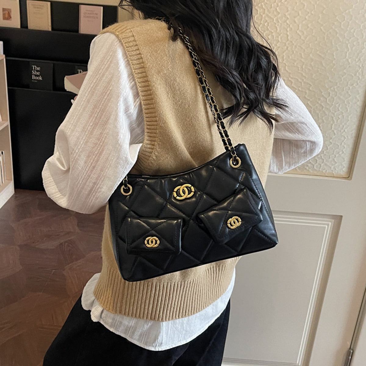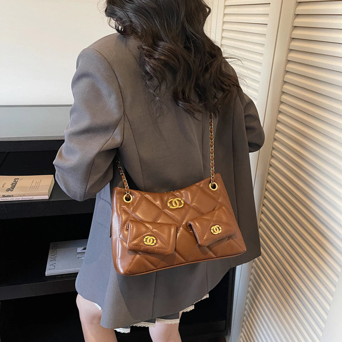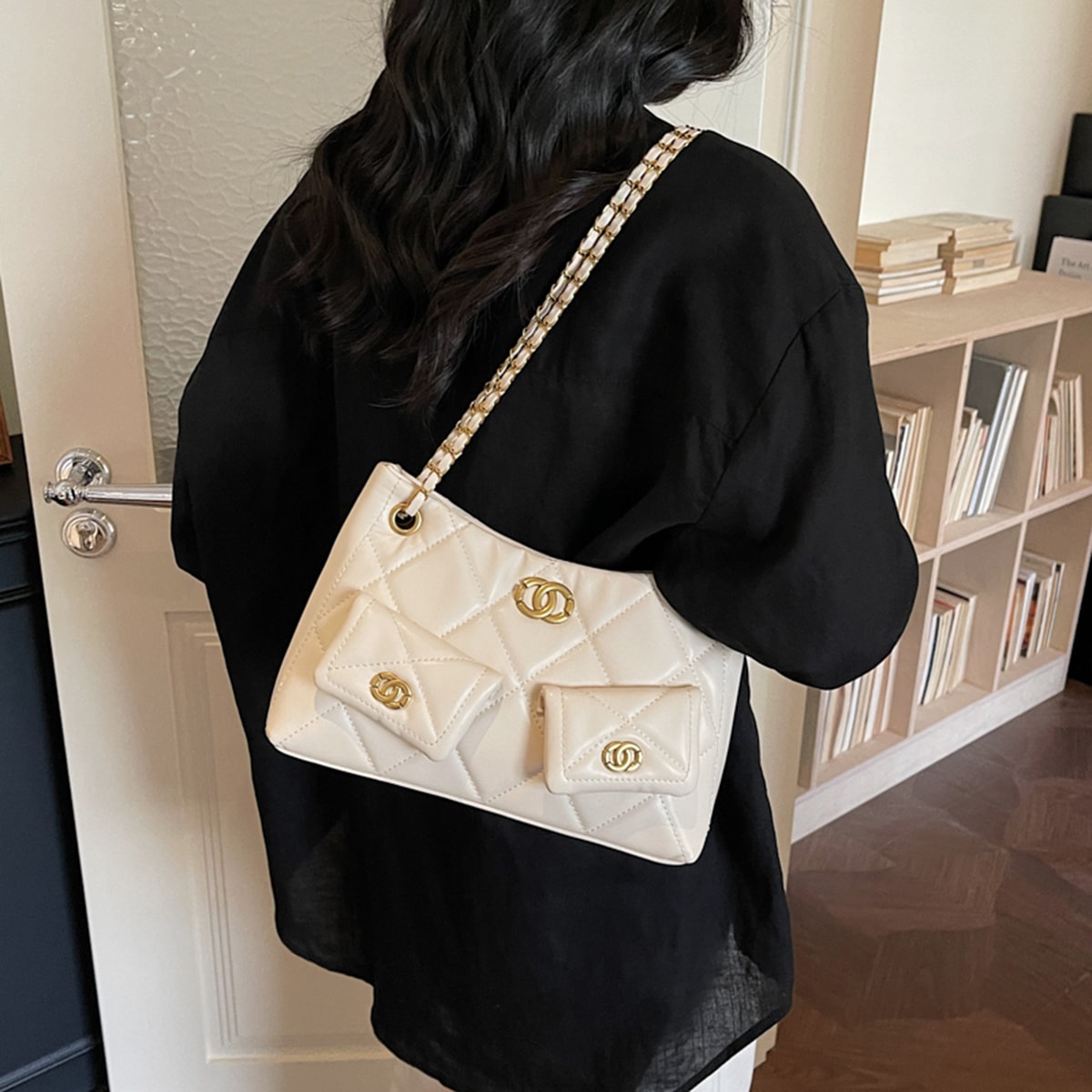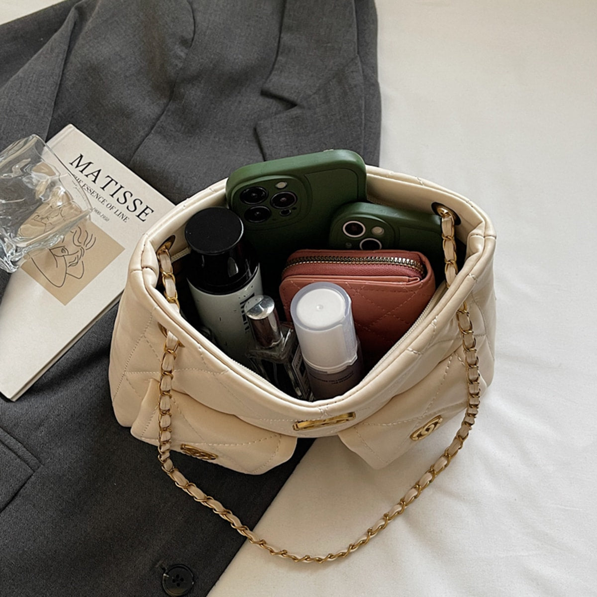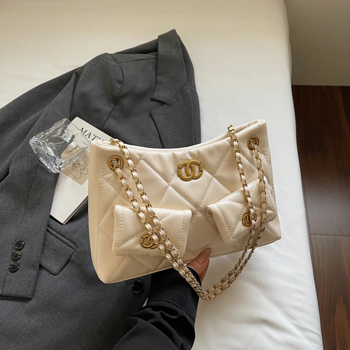 حقيبة يد نسائية أنيقة وعصرية، مثالية للخروج الليلي والتنقل وحضور الحفلات والمناسبات العائلية والعطلات. مصنوعة من خامات عالية الجودة تشمل PU، الجلد الصناعي، والجلد من الألياف الدقيقة لتضمن المتانة والمظهر الراقي. تأتي بفتحة بسستة لإبقاء محتوياتك آمنة، مع سلسلة زخرفية تضيف لمسة جمالية أنيقة على تصميم الحقيبة.